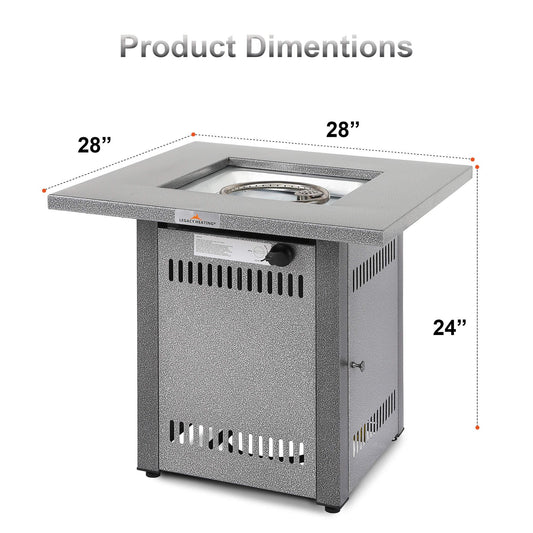 28in Outdoor Propane Fire Pit Table 50,000 BTU Silver Square Gas Fire Pit Table