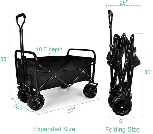 Heavy Duty Folding Portable Cart Wagon with 7 inch Widened All-Terrain Wheels