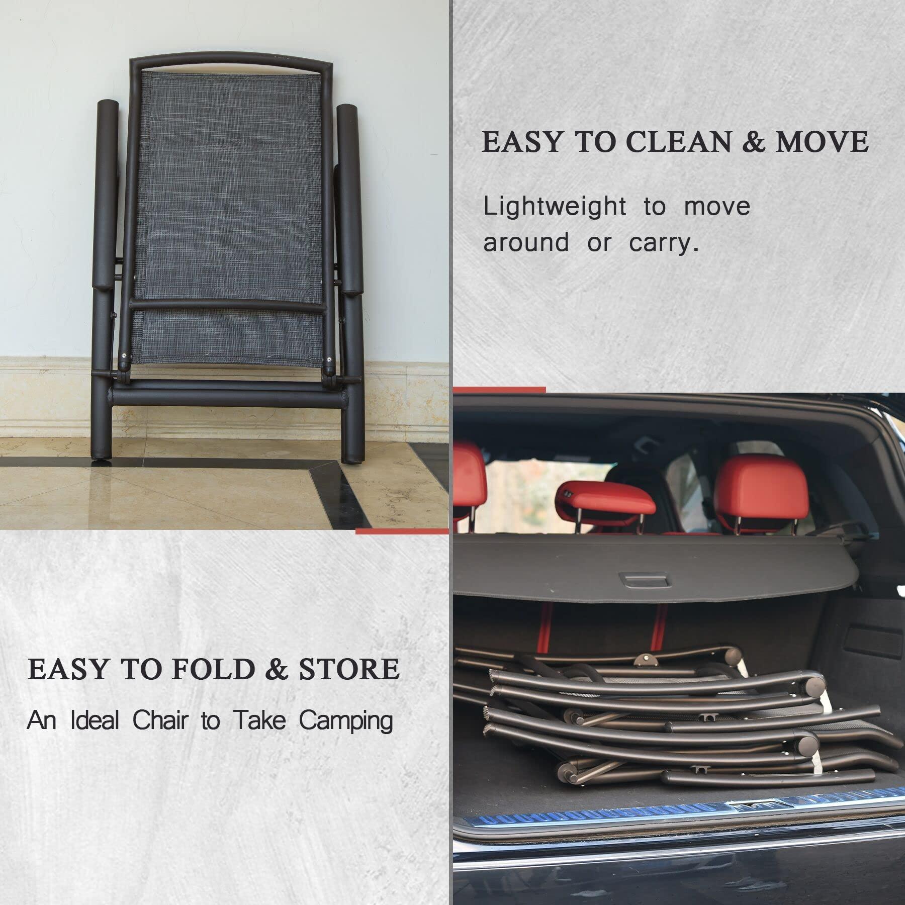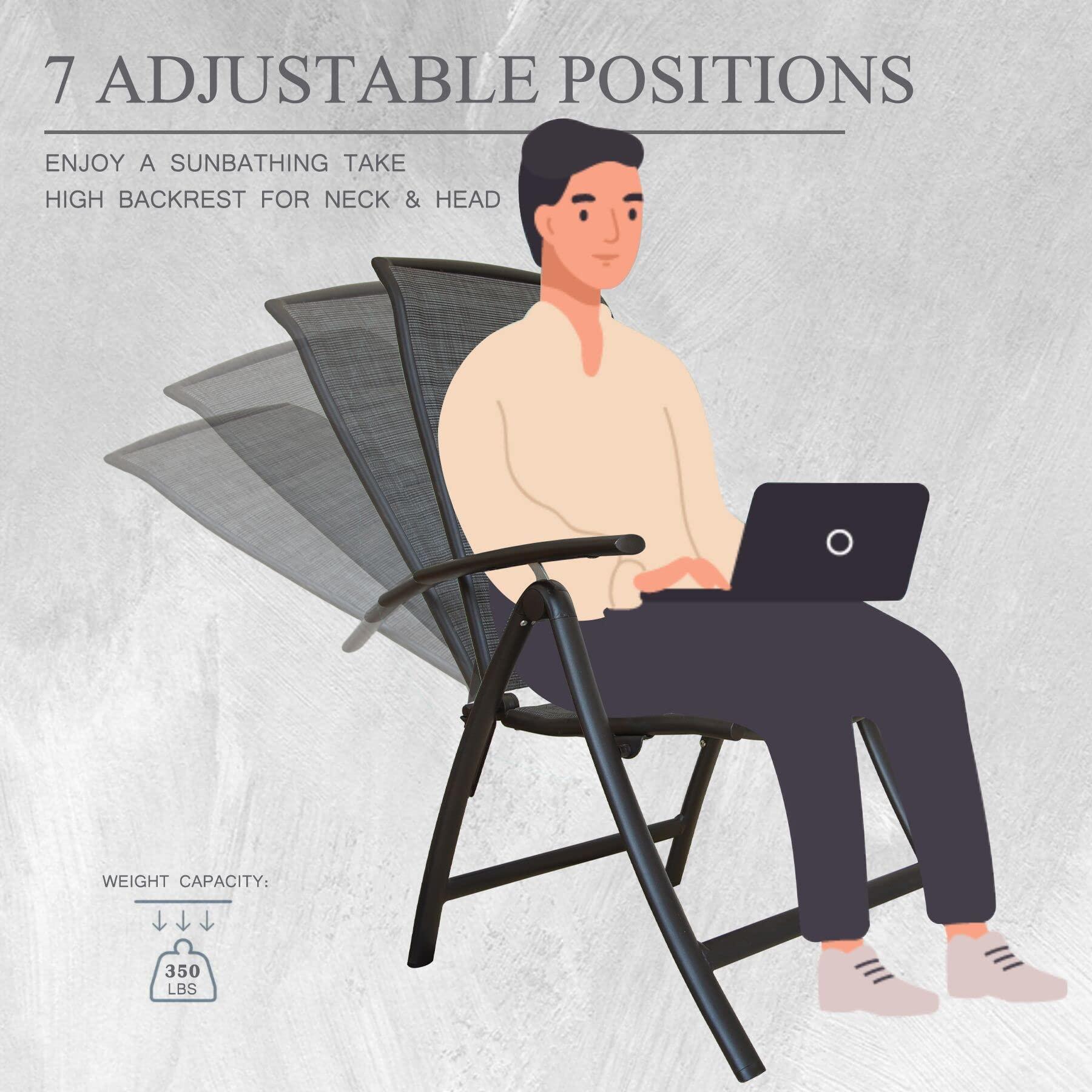 Domi Folding Patio Chairs Set of 2, Aluminium Frame Reclining Sling Lawn Chairs with Adjustable High